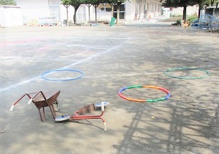 お外遊びの最中に「火事です」の放送が流れ、