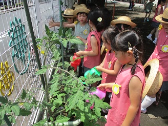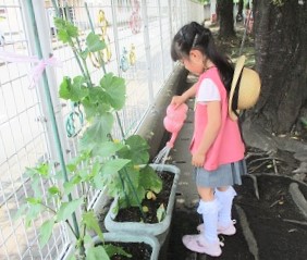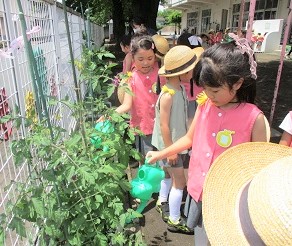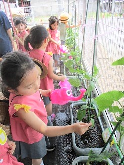 毎日、お野菜にお水をあげる月組さんは、