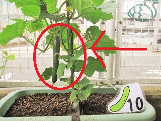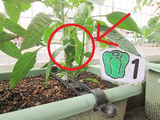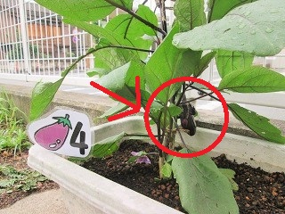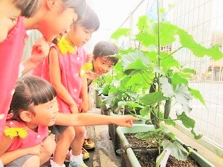 年長つき組が育てている、ピーマン・きゅうり・なす・トマトです。