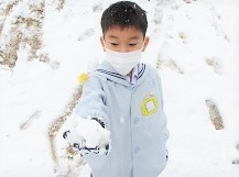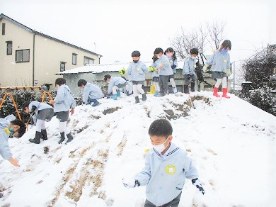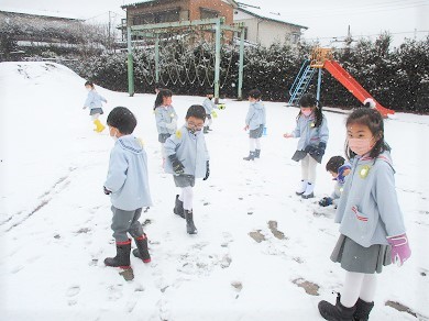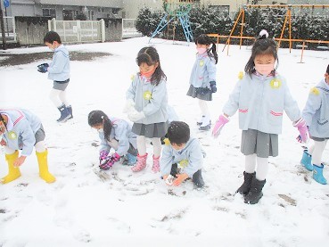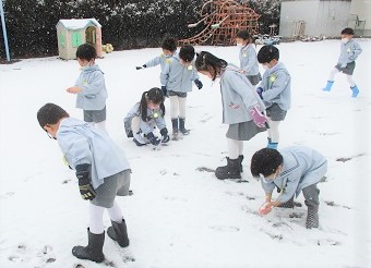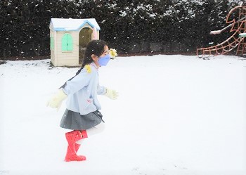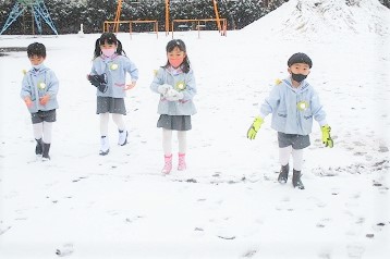 深々と降る雪に、子供たちは「寒いね~」「冷たいね~」と