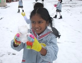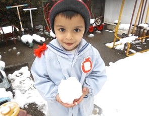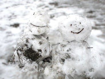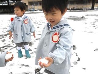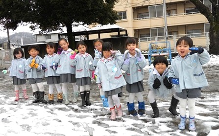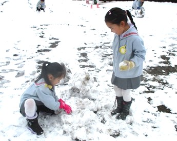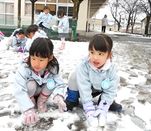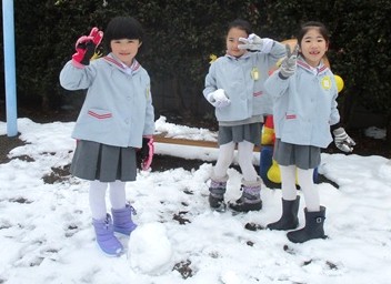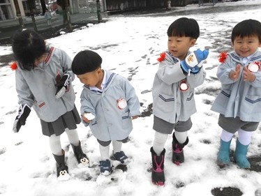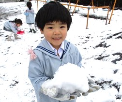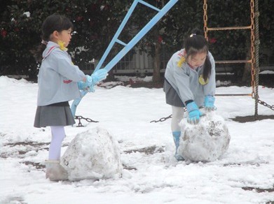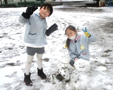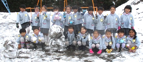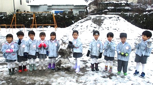 冷たい雪を触った手、息の白さ、みんなで作った雪だるま。