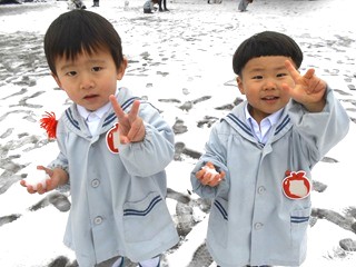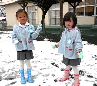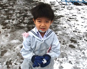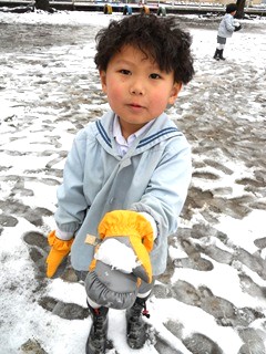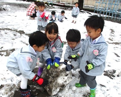 子供たちは「寒いね~」「冷たいね~」と言いながらも 何やら遊びたそう・・・(^^;)