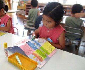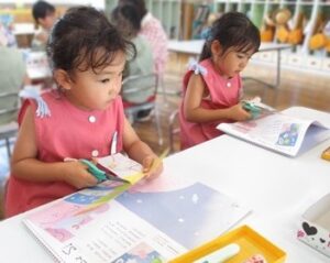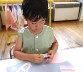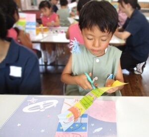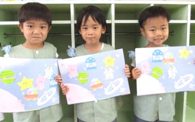 雪組さんが、はさみを使って「うちゅうたんけん」を作りました。