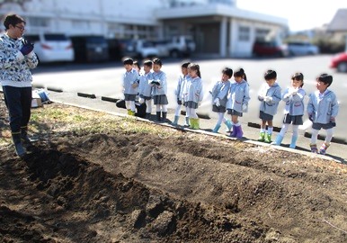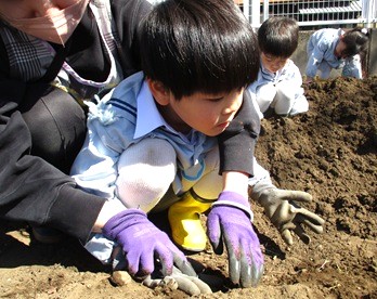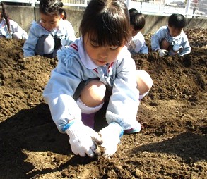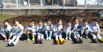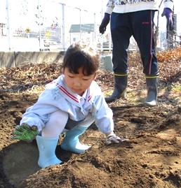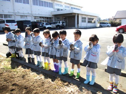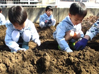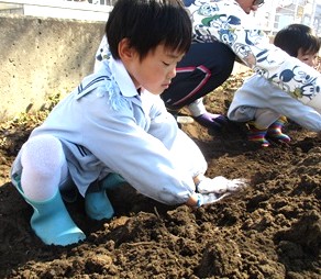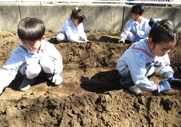 種芋を植えた後に、『おおきくな~れ!おいしいおいもにな~れ!』とみんなでお祈りしました。