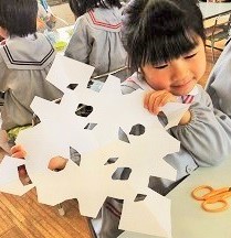 雪組の教室に みんなで作ったsnow flake が 降りました~‼