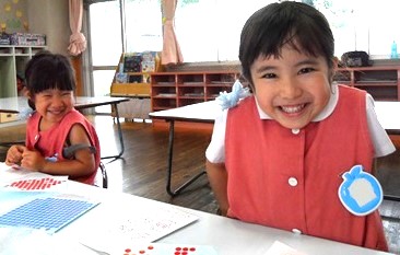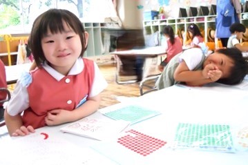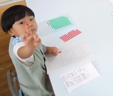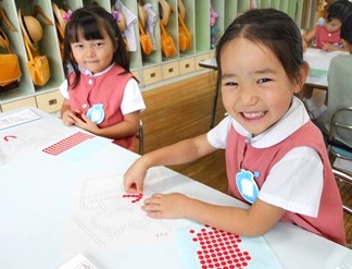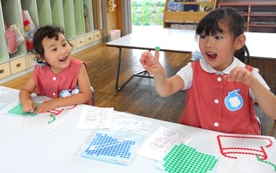 丸い小さなシールをお手本と同じ色で貼っていきます。