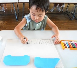 みんなでおでかけをしているところを描き完成になります。