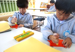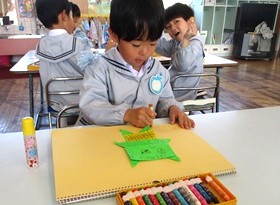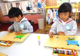 豆まきを経験した雪組さんは、季節の折り紙で「鬼」を作りました。