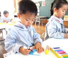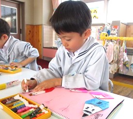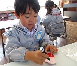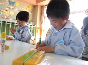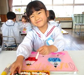 かわいく仕上がったお雛様たちを製作帳に貼り、
