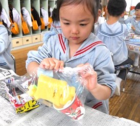 ご家庭からスタンプになりそうな物を選んで、持ってきていただきました。