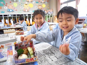 れんこん・スポンジ(ハート・くじら)・野菜・果物・くるみ・グレープフルーツ・段ボール・箱・めがね
