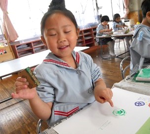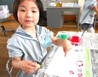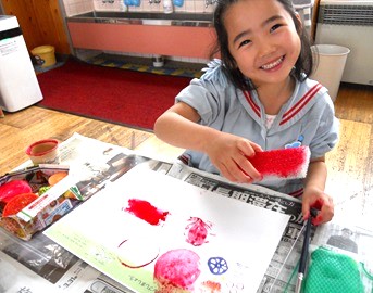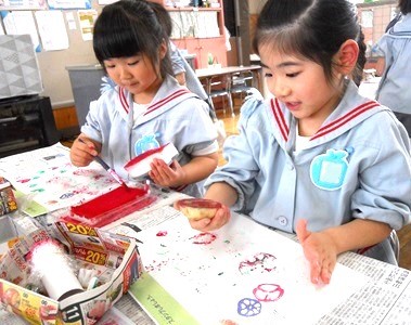 今回の雪組さんの絵の具遊びは「スタンプ」です。