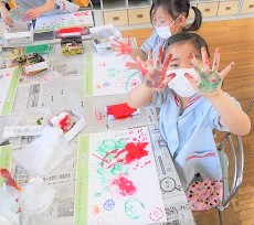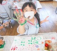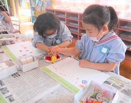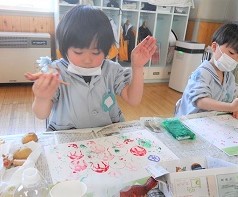 今回の雪組さんの絵の具遊びは「スタンプ」です。