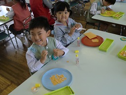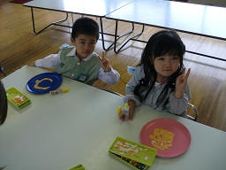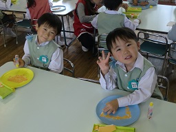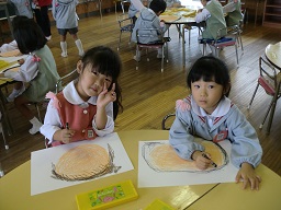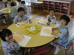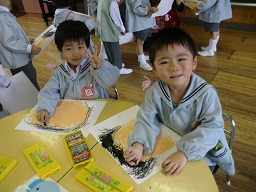 雪組さんは 色とりどりのお盆に折り紙をちぎっていきます♪