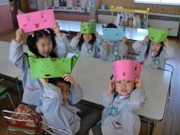 完成した鬼のお面! 2月3日の豆まきで活躍します!!