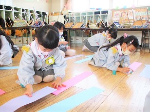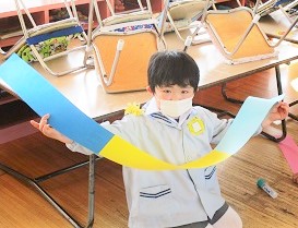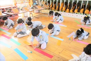 長い色画用紙で作るので、机の上に入りきらない!!