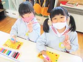 節分に向けて今日は月組さんが製作に取り組みました。