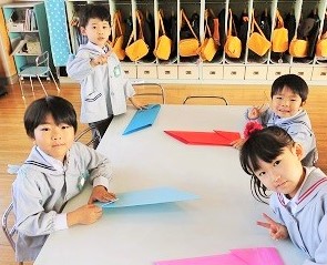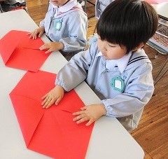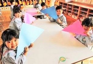 大きな色画用紙で鬼を折った後は・・・