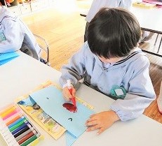 行事に向けて各クラスで豆まき用の鬼のお面を製作しています。