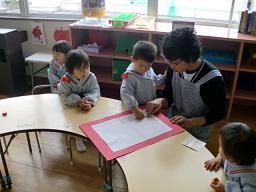 今日はつぼみ組の男の子がキャップを持ってきてくれました。