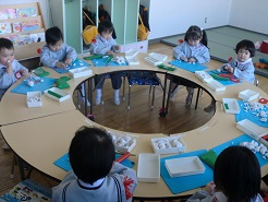 今日はつぼみ組さんの『粘土あそび』の風景です。
