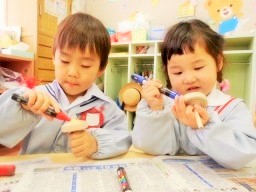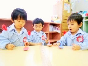 今日は、つぼみ組さんのコマ作りを紹介いたします。