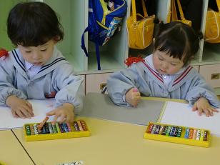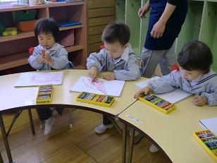 クレヨンを1本ずつ使ってすきな絵を描きました。