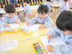 今日は、はな組さんがクレヨンの使い方を覚えて、