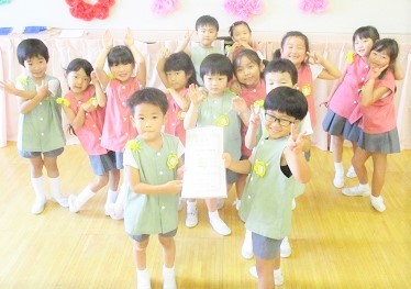 ≪おひさまいっぱいあびたで賞≫を頂き、みんなで大喜び(^^)