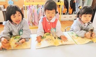 楽しく子供たちと絵本を読む ≪絵本観察≫ を行っています。