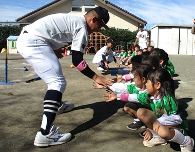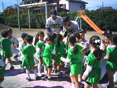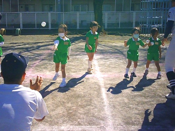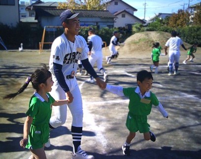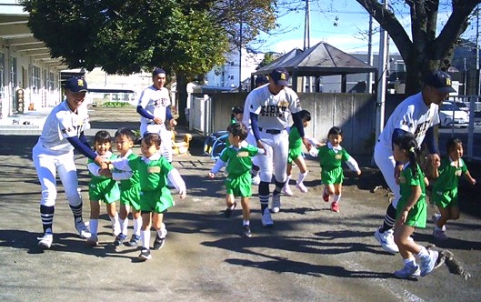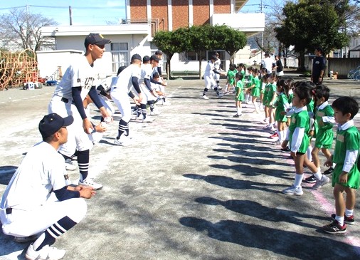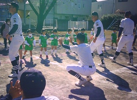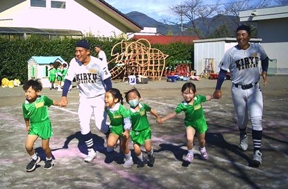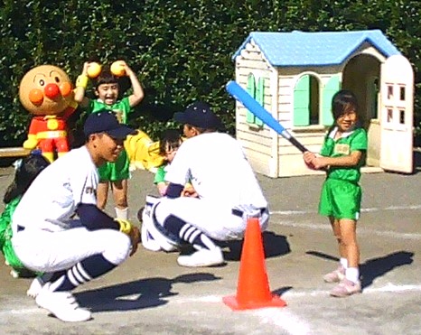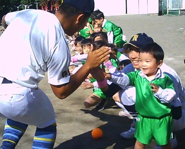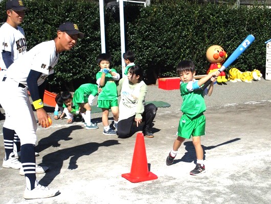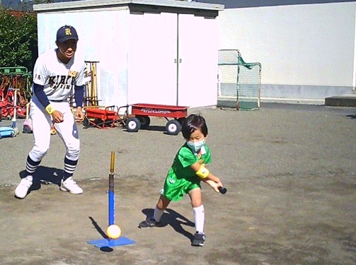 友達や高校生のお兄さんと、一緒に野球を楽しむ子どもたちのスポーツ交流は、本当に楽しいものでした。