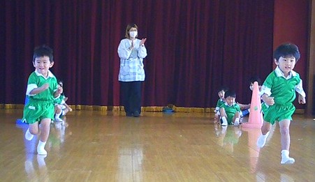ディズニー体操をしたり、かけっこをしたり、2チームに分かれてリレーも楽しんだり!!