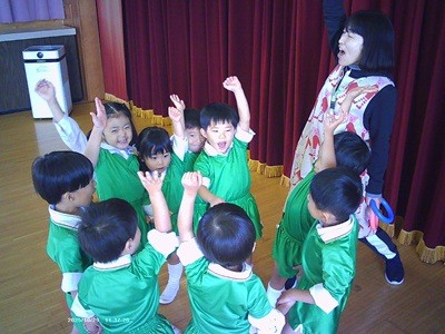 つぼみ組さんと花組さんは、遊戯室でのスポーツクラブです。