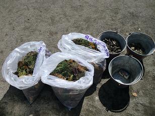 ≪集めた石や 落ち葉≫