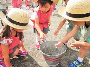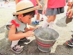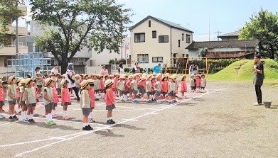 気持ちよく使いましょう!≫と お話しがあり、みんなで園庭清掃をしました。