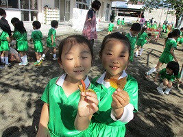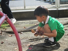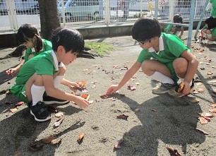 落ち葉拾いも子供たちには楽しい遊びの1つなんですね(^^)